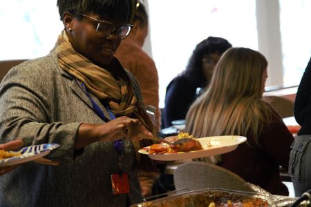 The GIM Creating Calm in Crosstown (C3) Committee planned a Thankful Together potluck for faculty and staff in the Section of General Internal Medicine. Section members were encouraged to bring in dishes, desserts, or drinks to celebrate the spirit of gratitude and togetherness. This event was the latest of several community-building events this year, which include the Spread the Love for Black History Month event, an ice cream social, a baking competition, and other potlucks. These events aim to bring community, fun, and care to the workplace. Check out the wide range of dishes & photos from the event below!