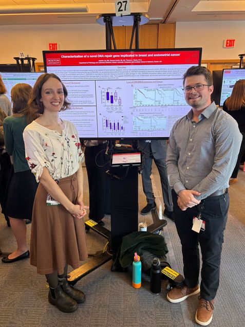 Many of our student researchers have secured funding for their projects through both Boston University and external organizations, including The Grunebaum Cancer Research Foundation. One of our medical students, Isabelle Joy, received support from the Grunebaum Foundation for her work investigating the biological role of a gene of unknown function in breast and endometrial cancer. Her dedication and findings were recently recognized with a Best Poster Award at the Boston University Department of Medicine Research Symposium—an exciting milestone that reflects the impact of student-driven research in our lab.